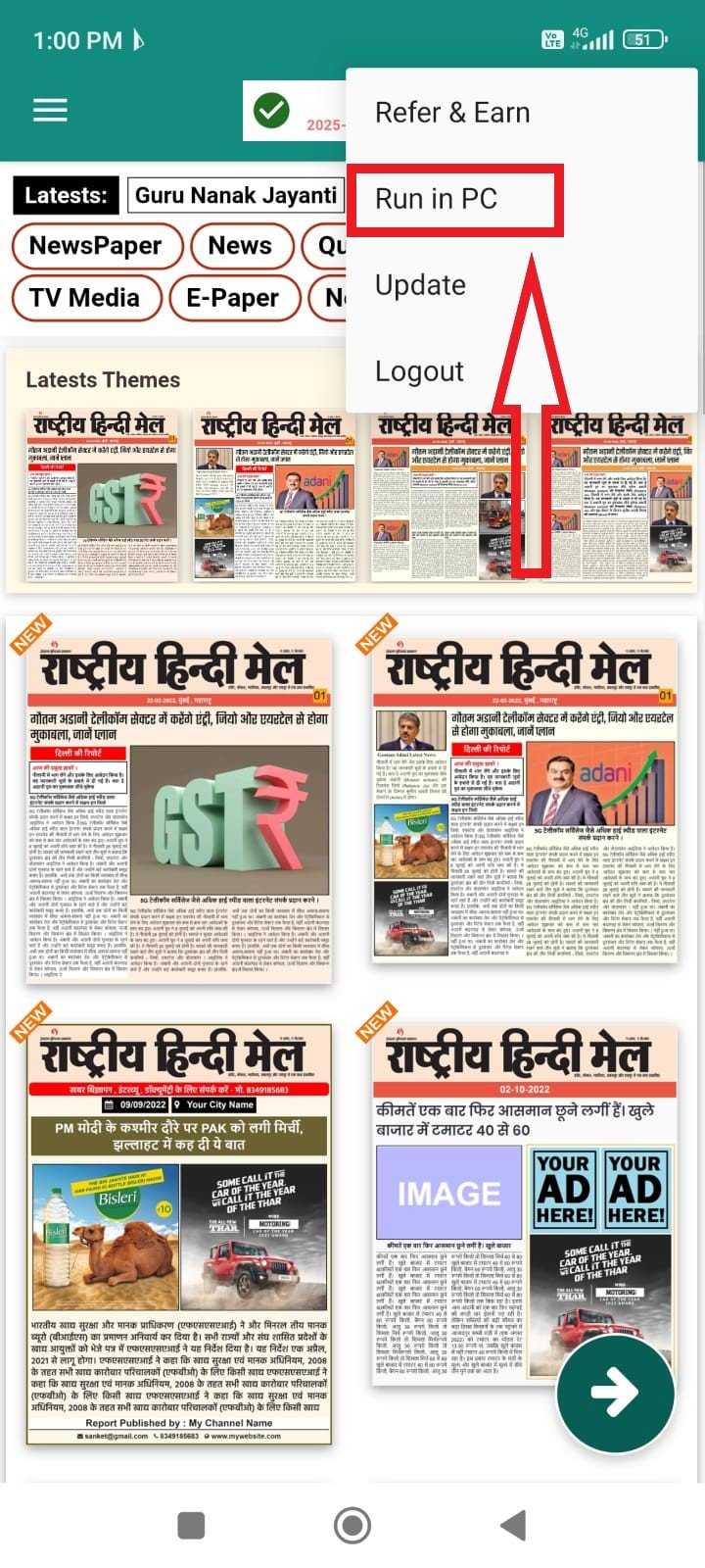 2. Tap or and Select Run in PC